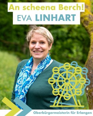 Unsere OB-Kandidatin Eva Linhart lädt zum offenen Austausch ein – und wünscht schon jetzt einen "scheenen Berch"!