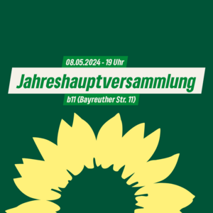 Der Kreisverband Erlangen-Stadt von BÜNDNIS 90/DIE GRÜNEN lädt am 14. Mai 2025 zur Jahreshauptversammlung (JHV) ein. Die Veranstaltung findet um 19:00 Uhr im b11 (Bayreuther Str. 11, Erlangen) statt. Neben der Wahl des Kreisvorstands stehen weitere wichtige Tagesordnungspunkte auf der Agenda: die Verabschiedung des Haushaltsplans 2025 sowie die Wahl von Delegierten für den Bundesparteitag und die Bezirksversammlung.
