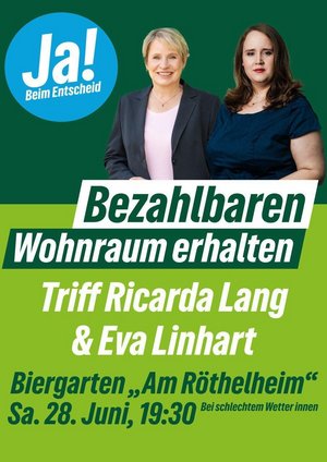 Über die notwendigen Weichenstellungen der Bundespolitik und die Maßnahmen vor Ort für mehr bezahlbaren Wohnraum diskutieren, Ricarda Lang, MdB und ehemalige Parteivorsitzende von B'90/Grüne, gemeinsam mit der grünen Co-Fraktionsvorsitzenden und OB-Kandidatin Eva Linhart und Marc Urban, wohnungspolitischer Sprecher der Grünen im Erlanger Stadtrat.
